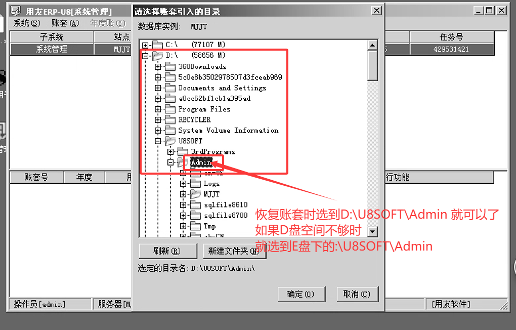 U8从备份中恢复账套时弹出的路径选择到安装目录下Admin目录就可以了。